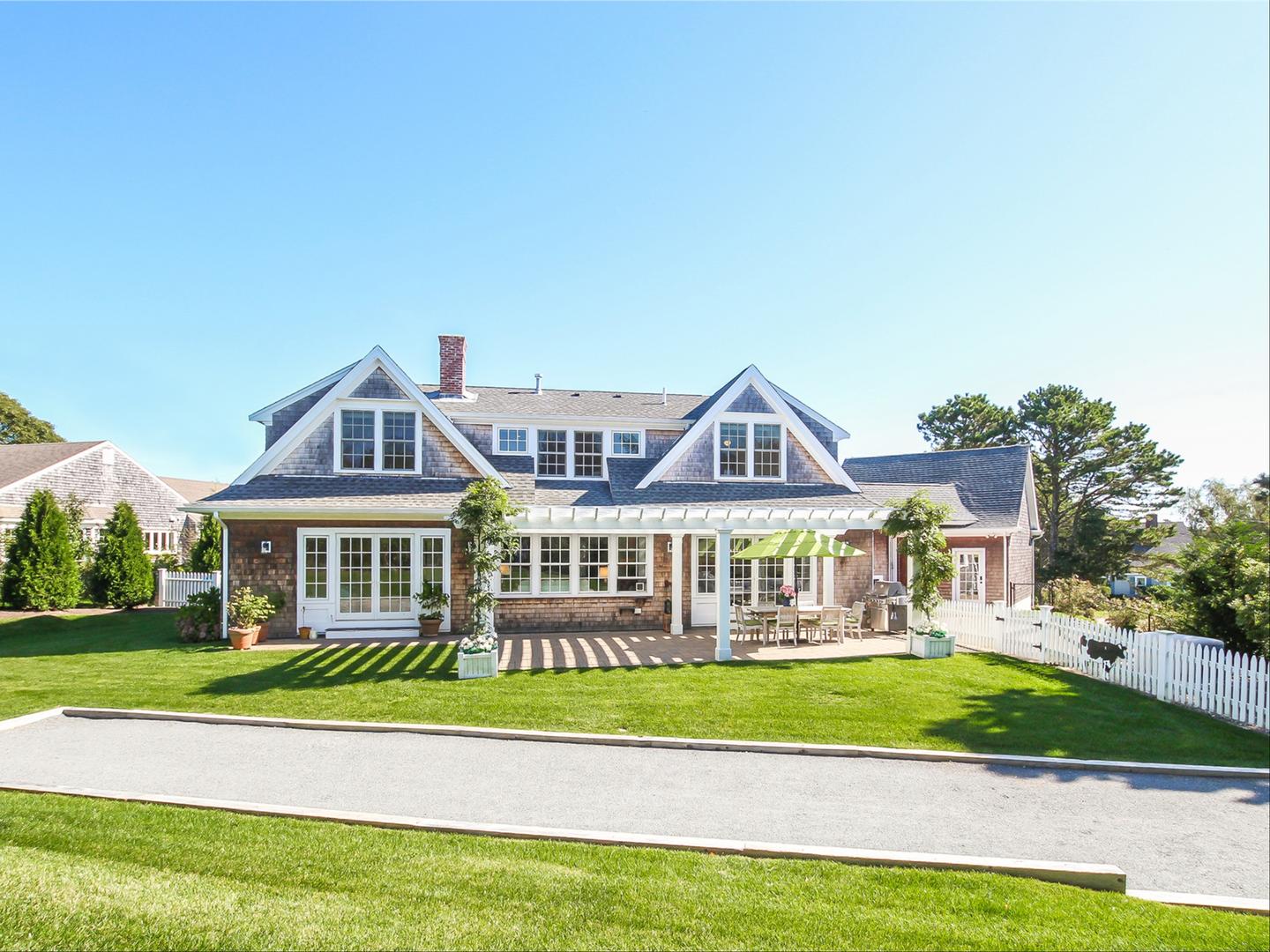 Compliment your Chatham get-away with accommodations of the highest caliber. This home affords numerous outdoor entertaining and relaxation opportunities from the professionally landscaped grounds, to the sun dappled blue stone patio & pergola, and for the vacationer with a competitive streak a full size back yard bocce court. The interior spaces are not overlooked with upscale furnishings throughout, 3 en-suite bathrooms, and a kitchen to compliment any culinary aptitude; homemade from scratch to take-out. The decor is sure to delight. Entertain yourself and guests with a short stroll to one of Chatham's great dining options at the Del Mar Restaurant or continue your sidewalk stroll into Chatham's Downtown for additional dining & shopping experiences. Oyster Pond Beach is close by and is great for children and adults of all ages. A quick 2 mile drive delivers you to Chatham's most popular swimming beach on Nantucket Sound at Hardings or to the picturesque and iconic Chatham Lighthouse Beach.